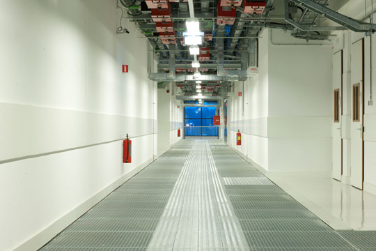 Общая площадь ЦОД: 8000 м2 Площадь фальшпола: 4000 м2 Площадь фальшпола под размещение оборудования: 4000 м2