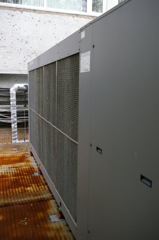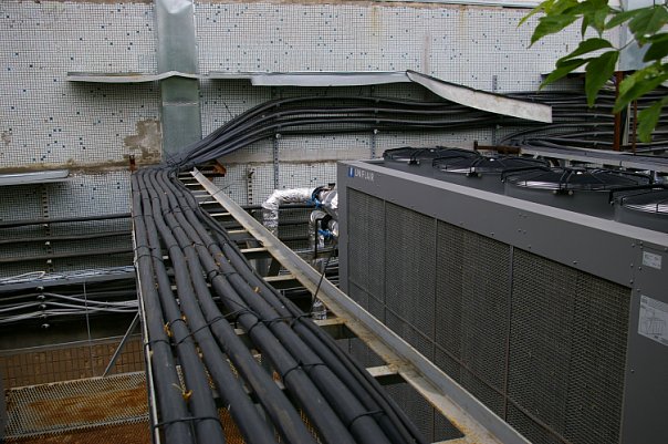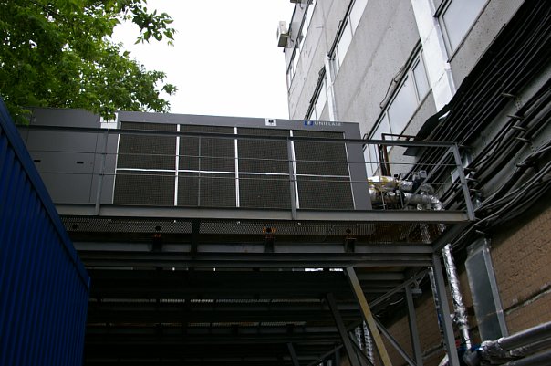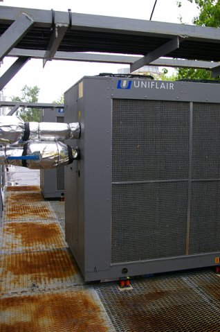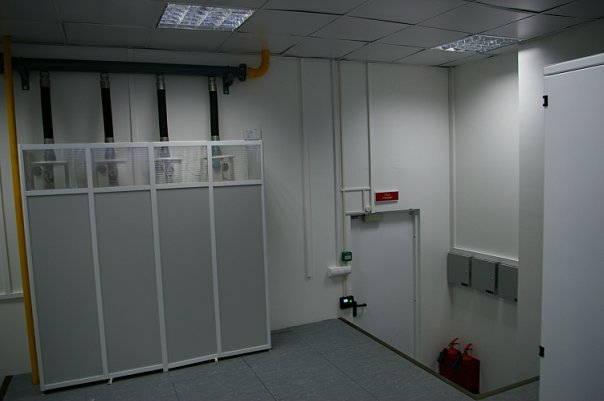 Микроклимат в серверном помещении обеспечивается прецизионными кондиционерами UNIFLAIR с подачей холодного воздуха под фальшпол. Система кондиционирования построена с резервированием по схеме N+2. Охлаждение оборудования организовано по принципу «холодных» и «горячих коридоров», поддерживаемая температура в «холодных коридорах» составляет +20±2°С.