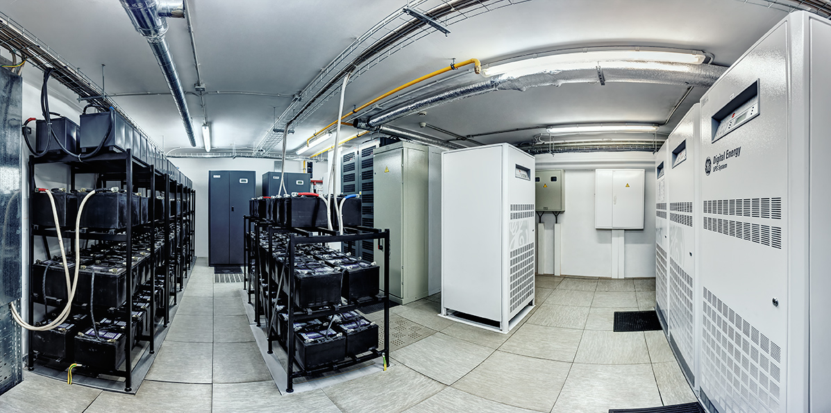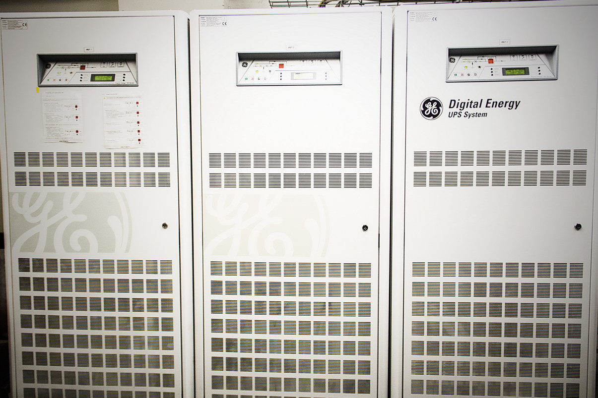 В ЦОД реализована двухфидерная схема энергоснабжения от разных секций подстанции и резервирование от дизель-генератора. Аккумуляторная система бесперебойного энергоснабжения переменного тока построена на основе ИБП по схеме резервирования N+1 с автономным временем работы 30 минут. Система бесперебойного электропитания постоянного тока реализована по схеме N+1, с автономным временем 1 час. Система телекоммуникационного заземления позволяет обеспечить безопасность персонала, защиту магистралей, а также оборудования от воздействия грозовых разрядов.Таким образом, электропитание осуществляется от трех независимых взаимно резервируемых источников питания (ввод с подстанции, аккумуляторы, дизель). Переключение с одного источника на другой происходит без перерывов в электроснабжении. Производится постоянный мониторинг ИБП и устройств автоматического ввода резерва с выводом данных в диспетчерскую.