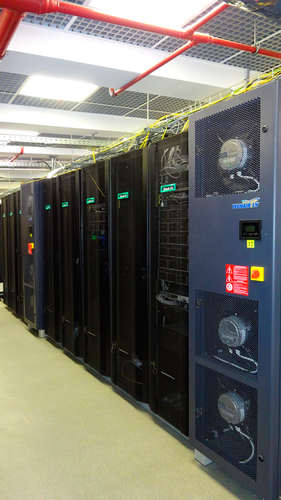 - cистема прецизионного рядного кондиционирования для создания идеальной климатической зоны (горячий/холодный коридоры).