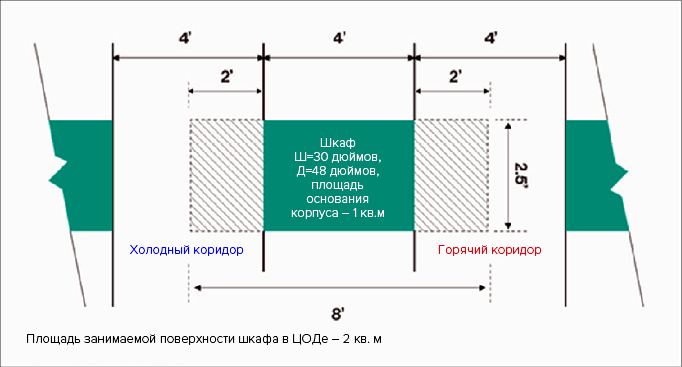 Рис. 1. Шкаф дата-центра реально занимает больше места, чем площадь основания его корпуса