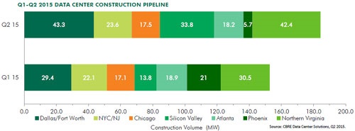 Провайдеры дата-центров, по мнению CBRE, за 6 месяцев с начала 2015 года построили 99,9 МВт мощности, чтобы не отставать от растущего масштаба предложения. Еще 184,4 МВт построены для инфраструктуры. Это на 766 МВт выше по сравнению со вторым кварталом 2015 года.