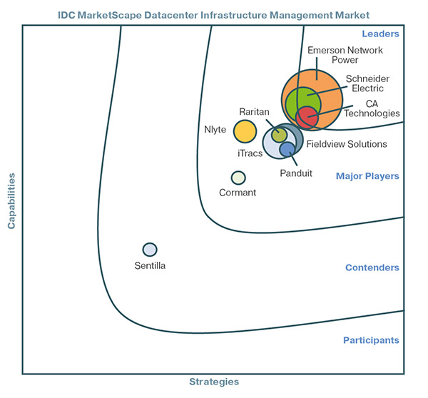 К лидерам отнесены: CA Technologies, Emerson Network Power и Schneider Electric, а к основным игрокам – Cormant, FieldView Solutions, iTRACS, Nlyte Software, Panduit и Raritan (здесь и далее перечисление в алфавитном порядке).