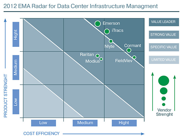 Рис. 5. Позиции вендоров – лидеров сектора DCIM-решений. Источник: Независимое исследовательское агентство EMA (Enterprise Management Associates)
