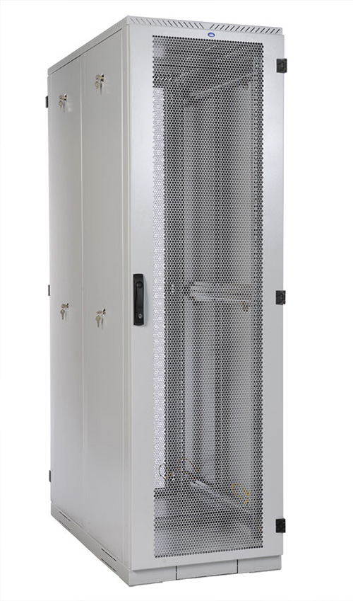 Шкафы ШТК-С Проф стандартно комплектуются одинарными или двойными дверями с увеличенной площадью перфорации, площадь перфорации составляет 65%. Двери надежно фиксируются усиленными точечными замками. Модели отличаются оптимальной комплектацией, простотой установки и удобством размещения оборудования. Внутри имеются вертикальные направляющие, с удобной регулировкой по глубине. В основание шкафа установлены винтовые опоры (ножки) и транспортировочные ролики. Предусмотрено крепление основания шкафа к полу. Для организации линейной установки предусмотрено удобное крепление шкафов между собой.