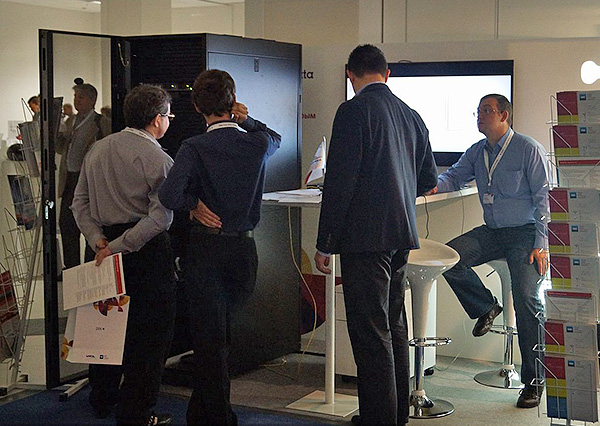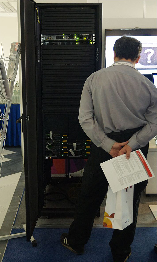 Бурные обсуждения шли и в фойе Конгресс-Парка. Здесь выделялся стенд компании IBS. Можно было посмотреть стойку с блейд-системой IBM PureFlex на которой был развернут гипервизор Parallels Cloud Server. На семи лезвиях были подняты виртуалки с разными версиями Windows и Linux. На двух лезвиях внутри двух больших виртуалок поднята еще контейнерная десктопная виртуализация Parallels VDI. На одной виртуалке внутри был запущен в цикле рекламный видео-ролик. Виртуалка каждые 30 секунд переезжала в режиме Live Migration c одного лезвия на другое, но по картинке ролика на экране это было совершенно не заметно. Приятно, что Parallels VDI и Parallels Cloud Server – российские разработки. Весомый вклад в программу импортозамещения в стране.