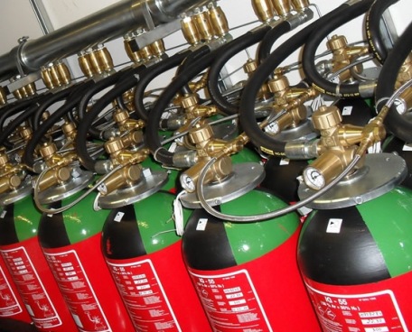 Прежде всего уточним, что имеется в виду под инертными газами. Скорее всего это Инерген и Argonite, которые изготавливаются из атмосферных газов – азот, аргон и т.п., в случае Inergen есть небольшая добавка двуокиси углерода. Каждый из газов находится в своем баке, поэтому требуется большое количество баков. Современные баки содержат от 19 до 23 кг каждого газа, поэтому, если вам надо 5500 кг газа на каждый этаж, то потребуется 241 бак. Это большое количество, которое будет занимать большое пространство.