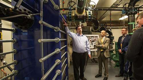 Инфраструктура теплообмена в подвале здания Уэстин – это масса труб большого диаметра в защищенном помещении, принадлежащая совместно McKinstry и Clise Properties через совместное предприятие Eco District.