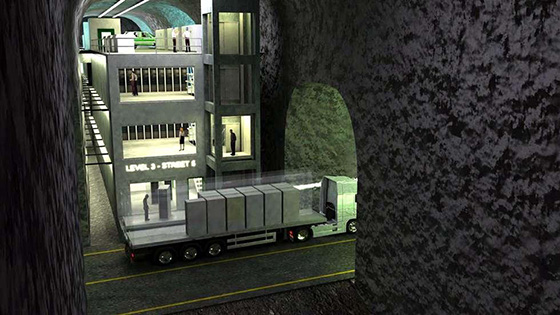 ПОДЗЕМНЫХ ПРОБОК НЕ БУДЕТ: на каждый из уровней LMD можно попасть по центральной дороге — «авеню». От нее отходят прямые улицы к отдельным камерам. Даже на самых глубоких уровнях грузовые автомобили могут разъехаться на двух полосах. «У нас лучшие дороги в регионе», — говорит директор по маркетингу Матс Андерссон.