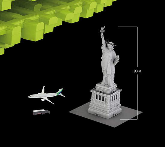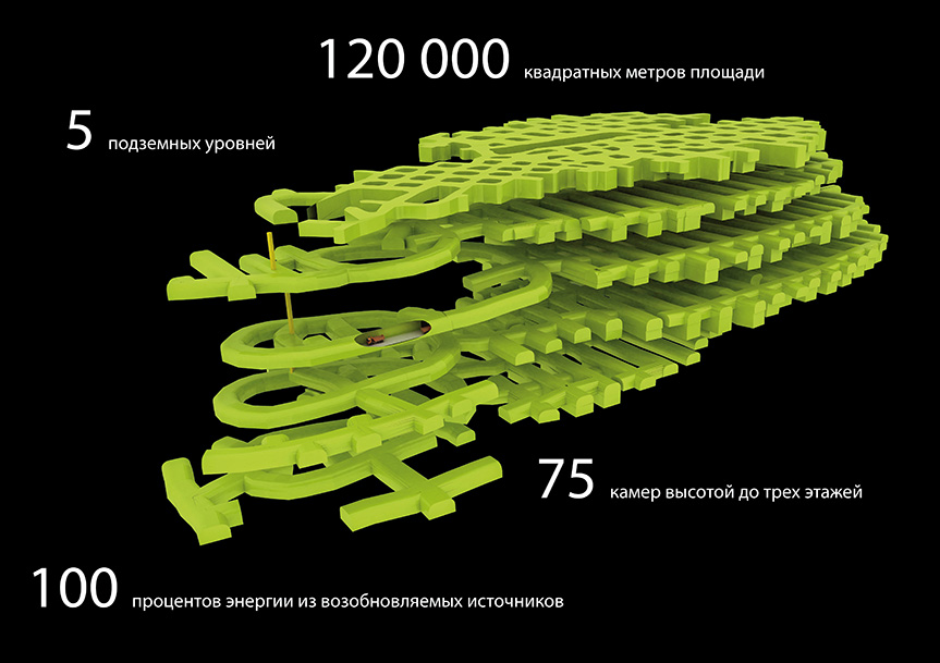 СООТНОШЕНИЕ РАЗМЕРОВ: Если бы инфраструктура, спрятанная в глубине скалы, была размещена на поверхности, это потребовало бы огромных площадей и затрат на строительство.