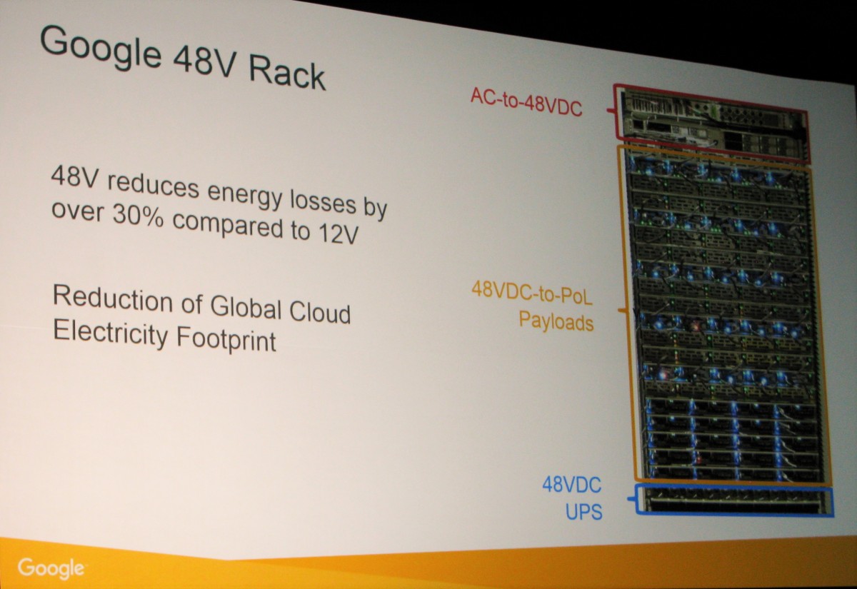 В дополнение к этим размерам, на прошлой неделе Google сделала первый шаг к созданию еще одного нового форм-фактора стоек, отдав проекту новую стойку на 48В с габаритами, которые кажутся ниже и шире, чем текущие спецификации OCP.