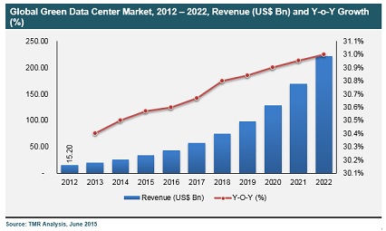 В 2014 году мировой рынок экологически чистых дата-центров был оценен в 23,58 млрд. долларов — как ожидается, показатель взлетит на 30,8% в период между 2015 и 2022 годами параллельно с ростом принятия экологически чистых решений в ИТ, телекоммуникациях, а также в банковской деятельности, сфере финансовых услуг и страховании (BFSI).