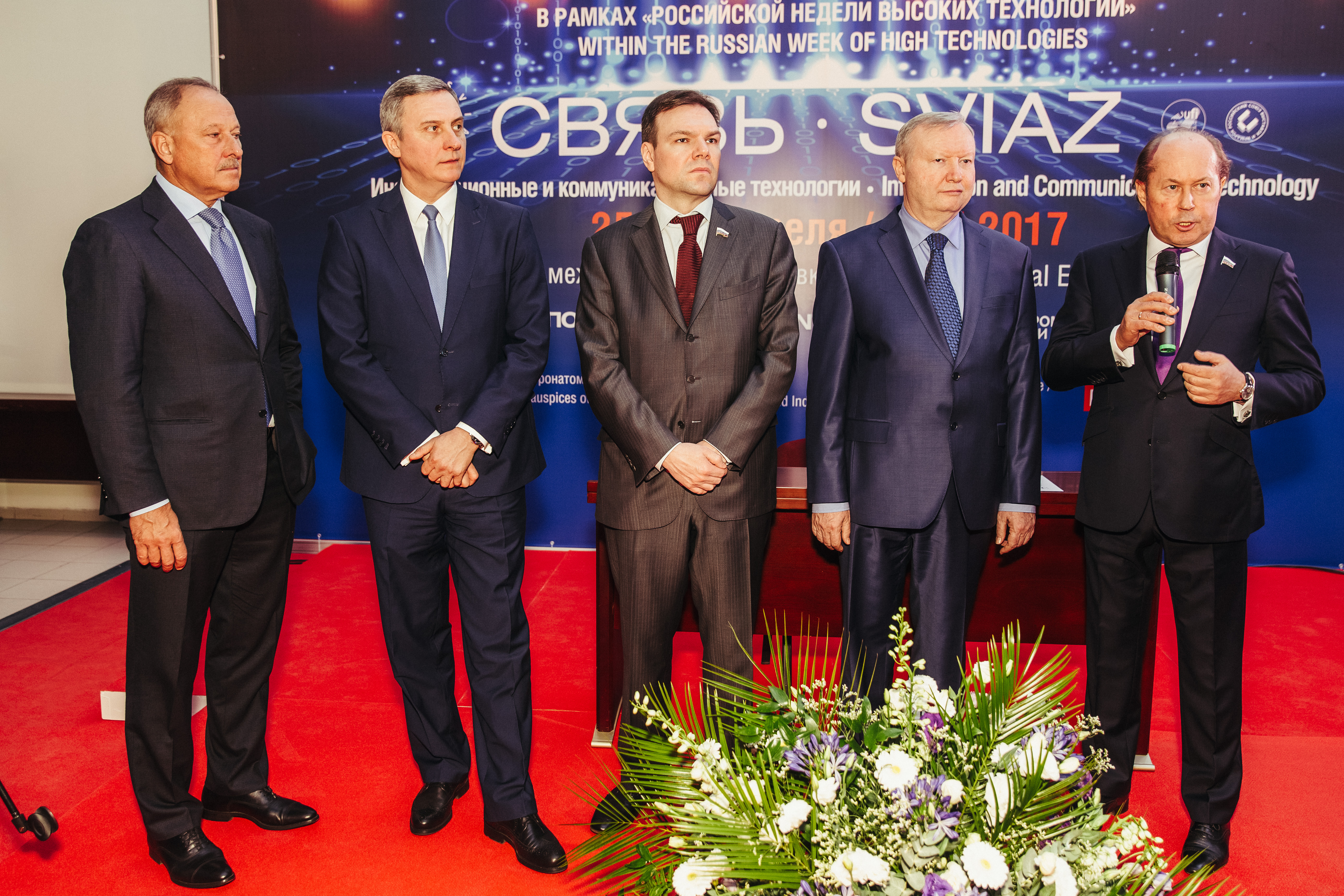 В церемонии официального открытия выставки приняли участие председатель Комитета Госдумы по информационной политике, информационным технологиям и связи Леонид Левин, вице-президент ТПП РФ Владимир Дмитриев, руководитель Федерального агентства связи Олег Духовницкий, заместитель руководителя Департамента информационных технологий г. Москвы Александр Горбатко, генеральный директор АО «Экспоцентр» Сергей Беднов, представители столичных и региональных государственных структур, связанных с коммуникациями, а также представители бизнеса. Почетным гостем открытия стал заместитель министра связи и высоких технологий Азербайджанской Республики Эльмир Тофиг оглы Велизаде, чья страна впервые выступила страной-партнером выставки «Связь-2017».