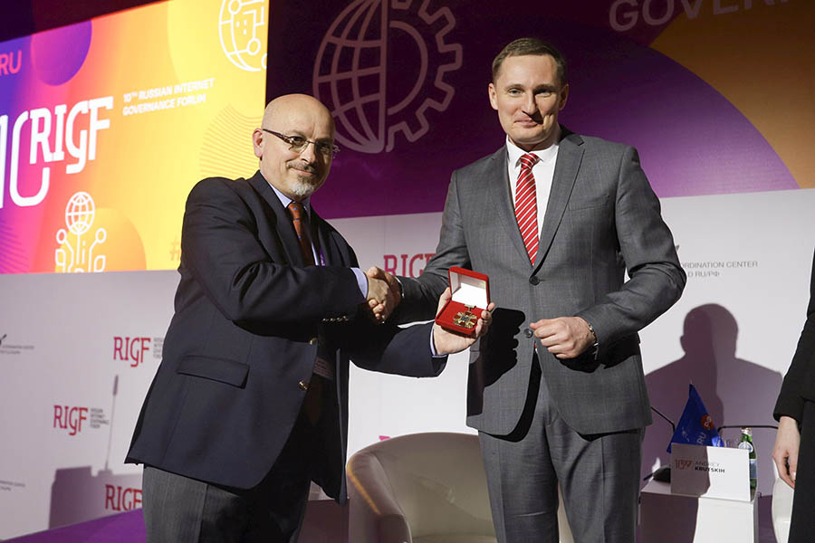 На каждом Российском форуме по управлению интернетом участники чествуют лауреата награды Virtuti Interneti. В 2019 году на юбилейном форуме награда вручена доктору Йовану Курбалийе – всемирно известному эксперту в области управления интернетом, представителю Группы высокого уровня Генерального секретаря ООН по цифровому сотрудничеству и автору книги «Управление интернетом», 7-е издание которой прошлой осенью Координационный центр выпустил в свет. Йован Курбалийя прочитал традиционную лекцию лауреата для участников RIGF 2019.